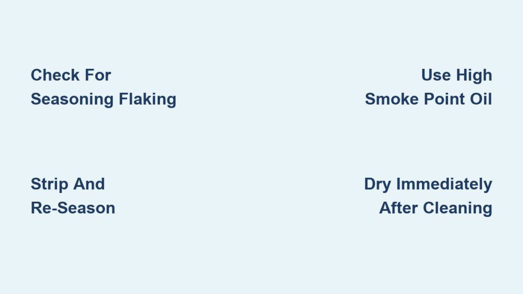 You’ve just finished cooking a perfect steak in your favorite cast iron skillet when you notice something alarming—black flakes coming