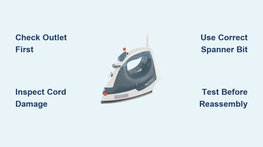 Power failures represent the most common Black and Decker steam iron repair scenarios. Before diving into internal components, rule out simple external issues that could save you hours of unnecessary work.