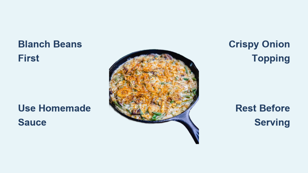 For the crispiest topping, refresh pre-made onions in a 400°F oven for five minutes before serving. If your cast iron skillet is smaller than 10 inches, reduce ingredients by one-third to prevent overflow. Let the casserole rest ten minutes after baking—the sauce needs this time to set for clean serving.