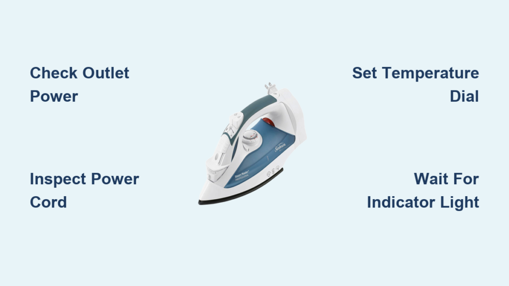- Light comes on but iron doesn’t heat: Check temperature dial position (some models require minimum setting)