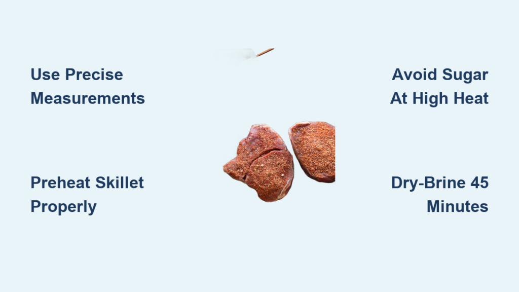 - Application sequence: When to add rub relative to skillet preheating (critical for sugar-containing blends)